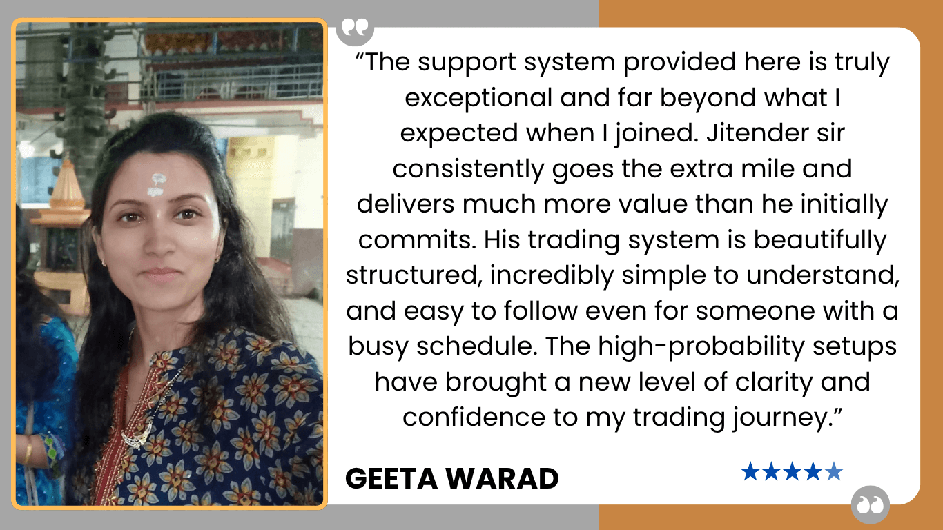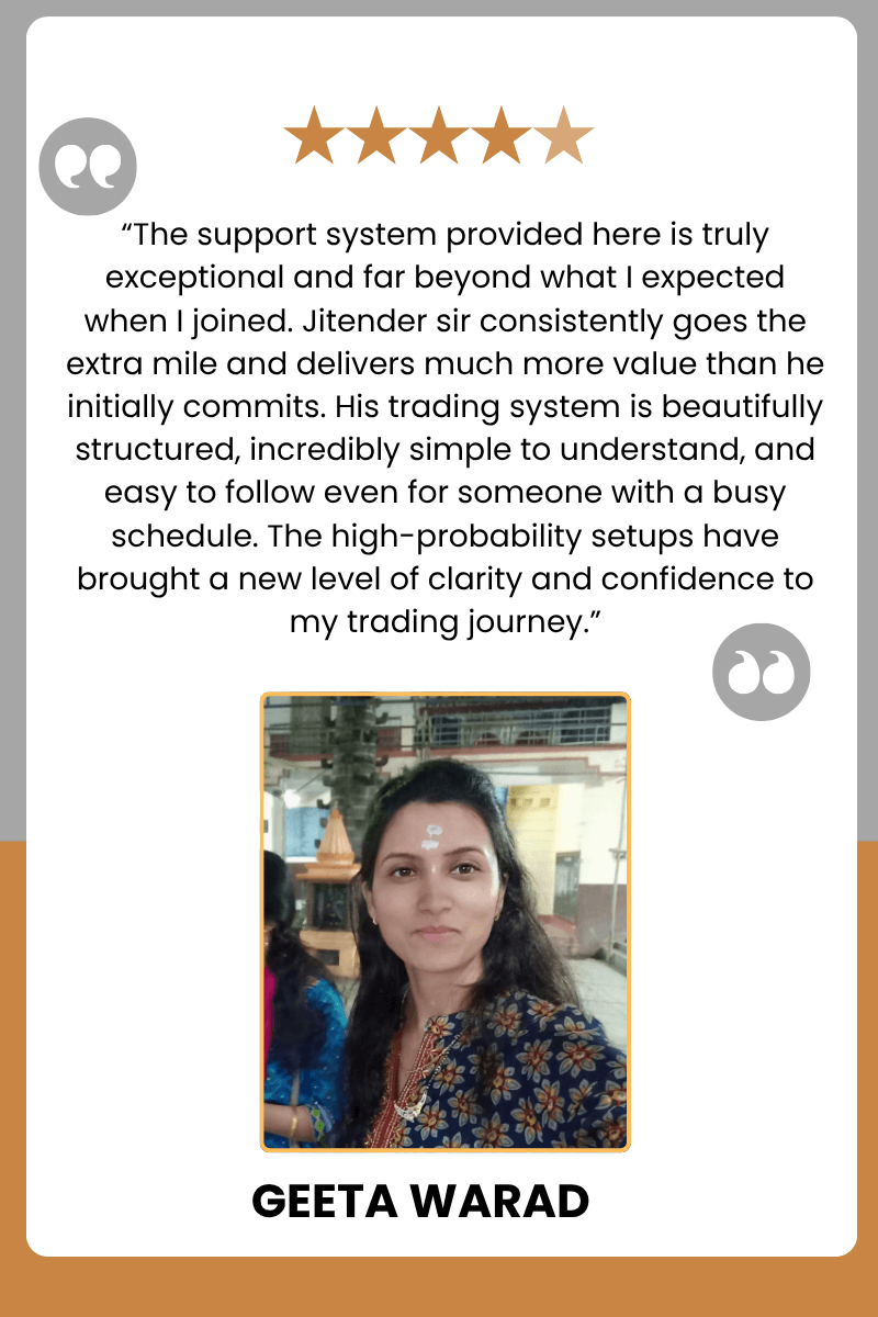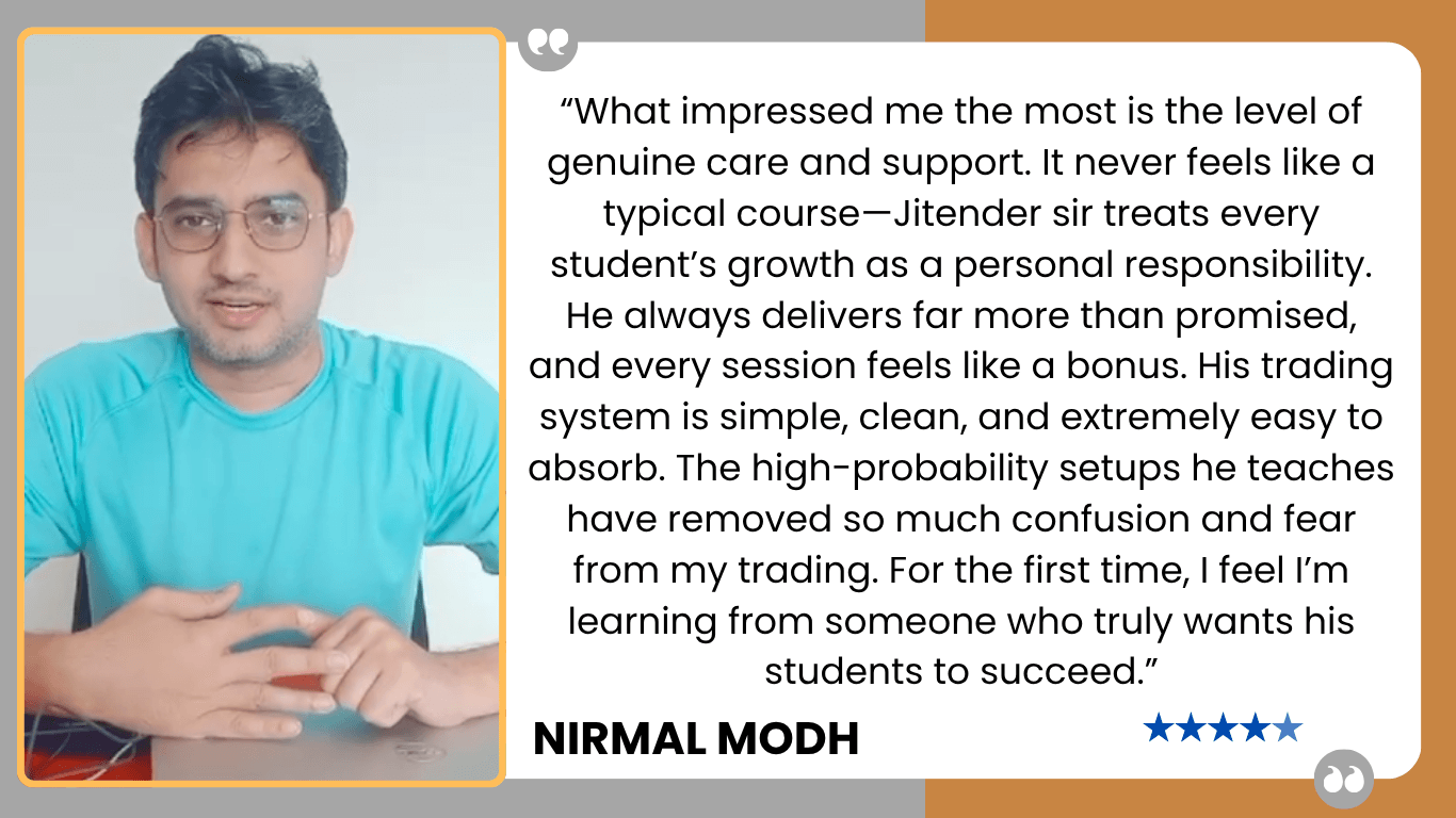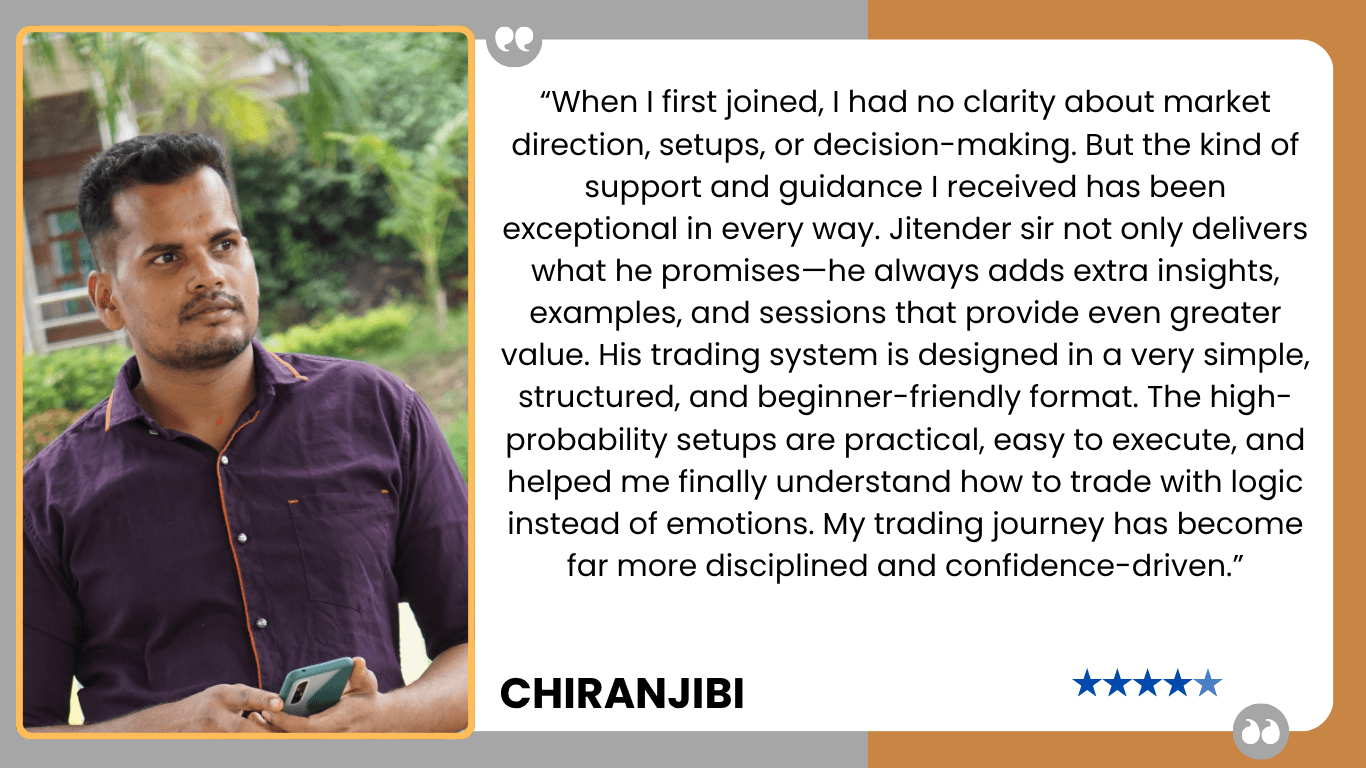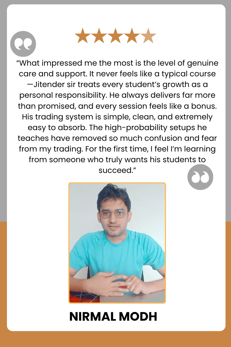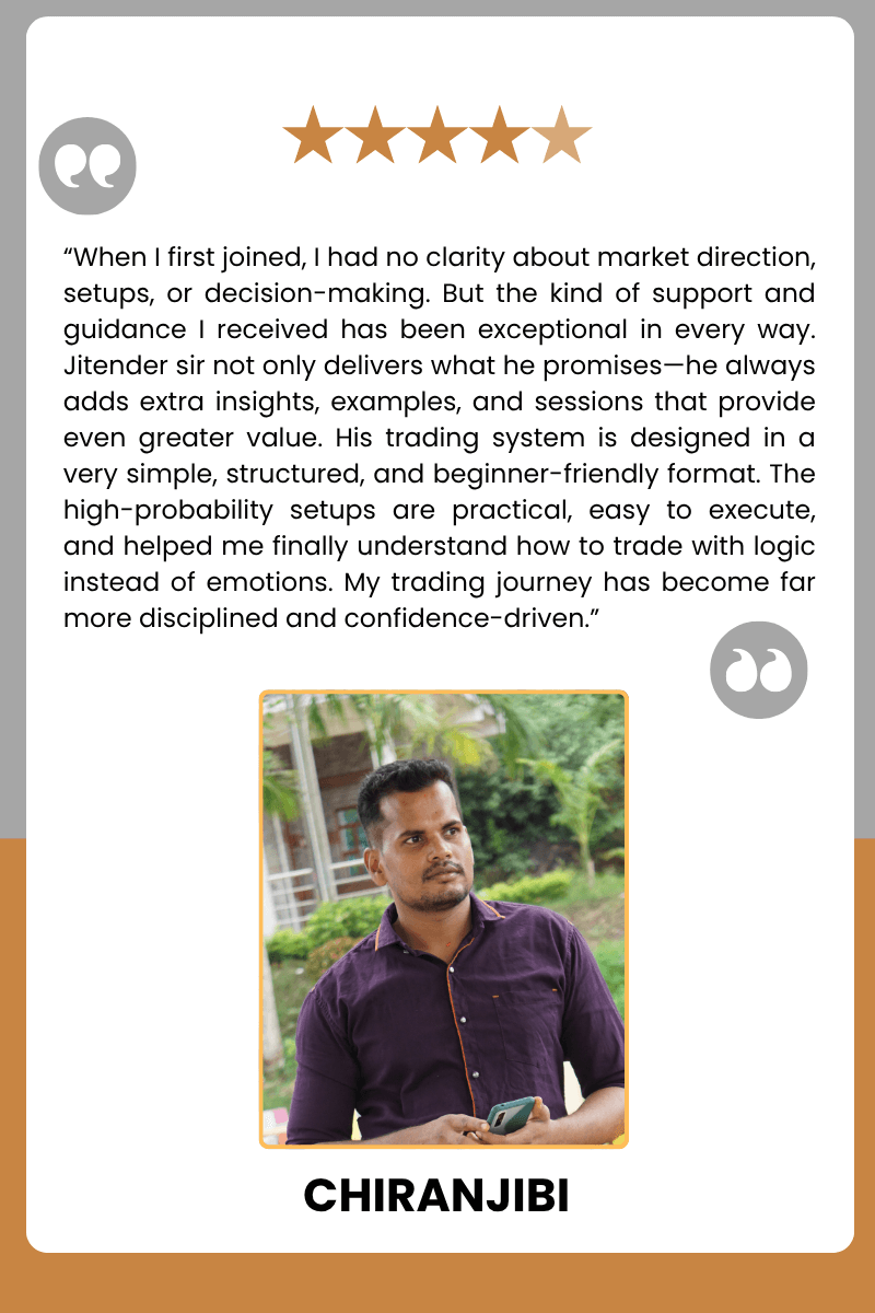 NSE Certified Research Analyst with 15+ years of real trading experience.I’ve trained 2,000+ beginners, job professionals, and business owners across India.I’m a full-time trader myself, so every strategy I teach is tested in real market conditions—not theory.My systems are simple, rule-based, and designed for people with limited time and capital.I help traders avoid common mistakes, control emotions, and trade with clarity and confidence.If you want a practical, proven trading approach that actually works, you’re in the right place.